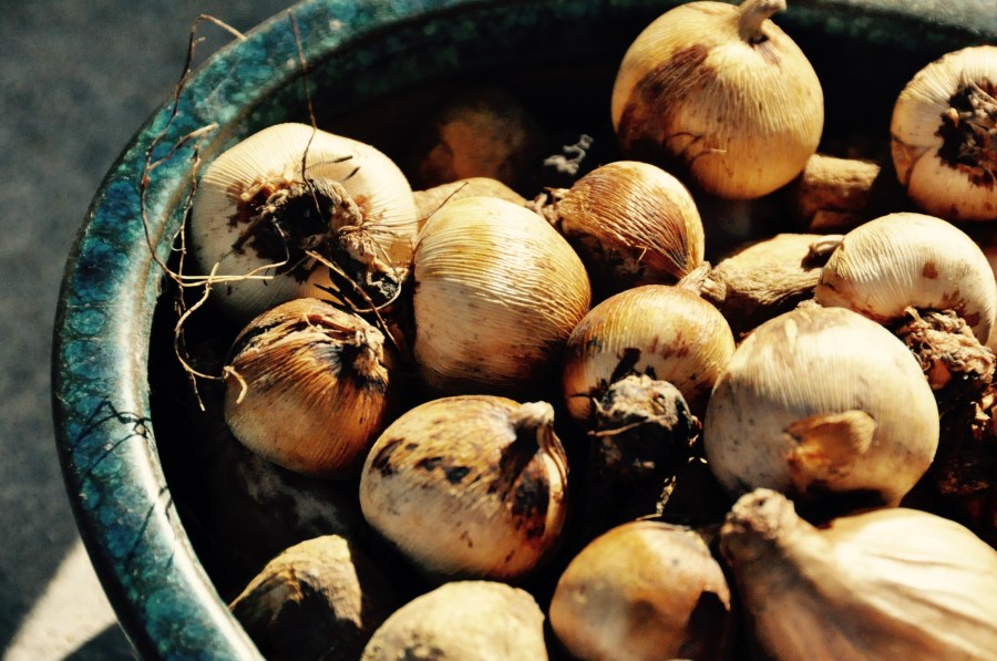 Die Zwiebeln und Wurzelstücke für die nächste Gartensaison sind angekommen und bereits in der Erde versenkt.